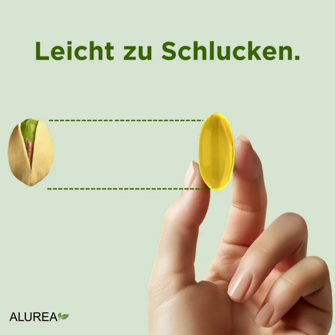 Ganz einfach: 1–2 Softgels täglich mit etwas Wasser, am besten zu einer Mahlzeit. So integrierst du die Unterstützung spielend leicht in deinen Alltag.